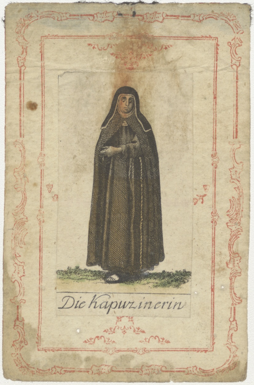 Serie kostuums religieuze ordes: Capucines, non, ingekleurd