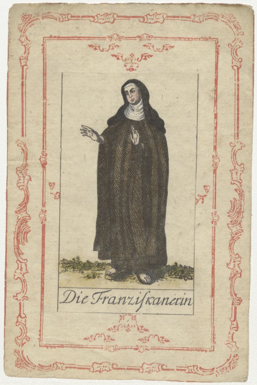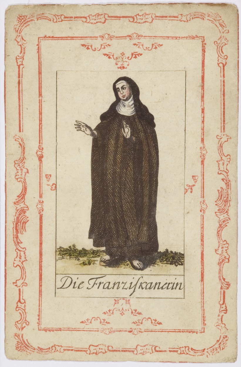 Serie kostuums religieuze ordes: Franciscanes, non (Duits), ingekleurd