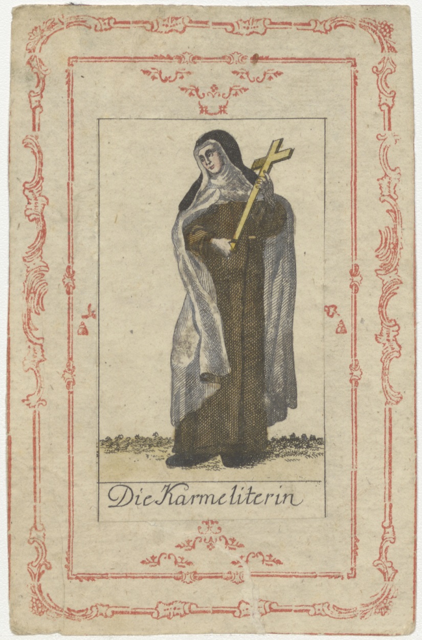 Serie kostuums religieuze ordes: Carmelites, non (Duits), ingekleurd