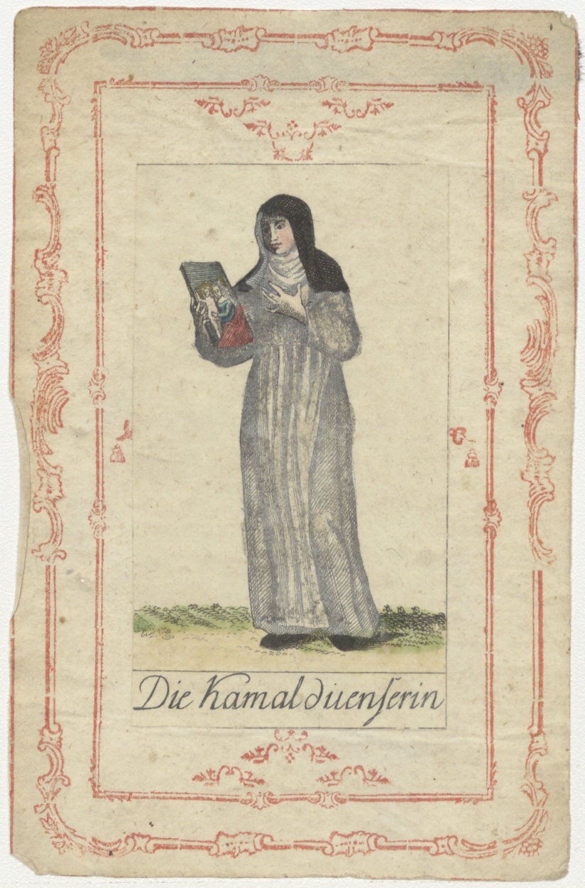 Serie kostuums religieuze ordes: Camalduenser, non (Duits), ingekleurd