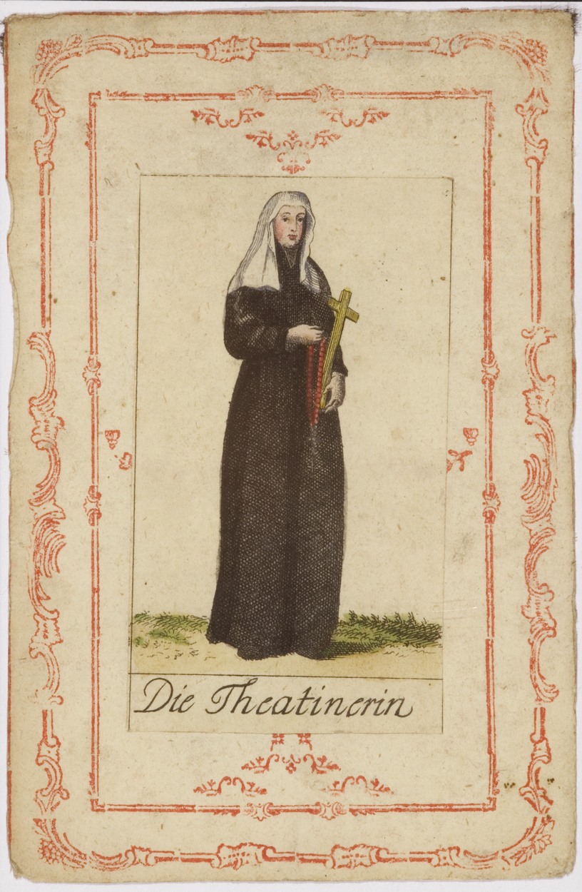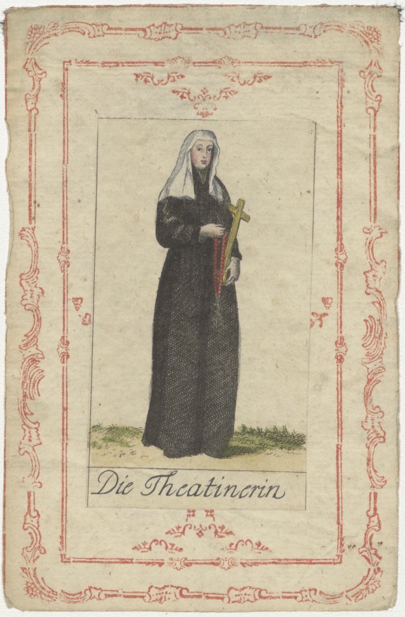 Serie kostuums religieuze ordes: Theatijner, non (Duits), ingekleurd