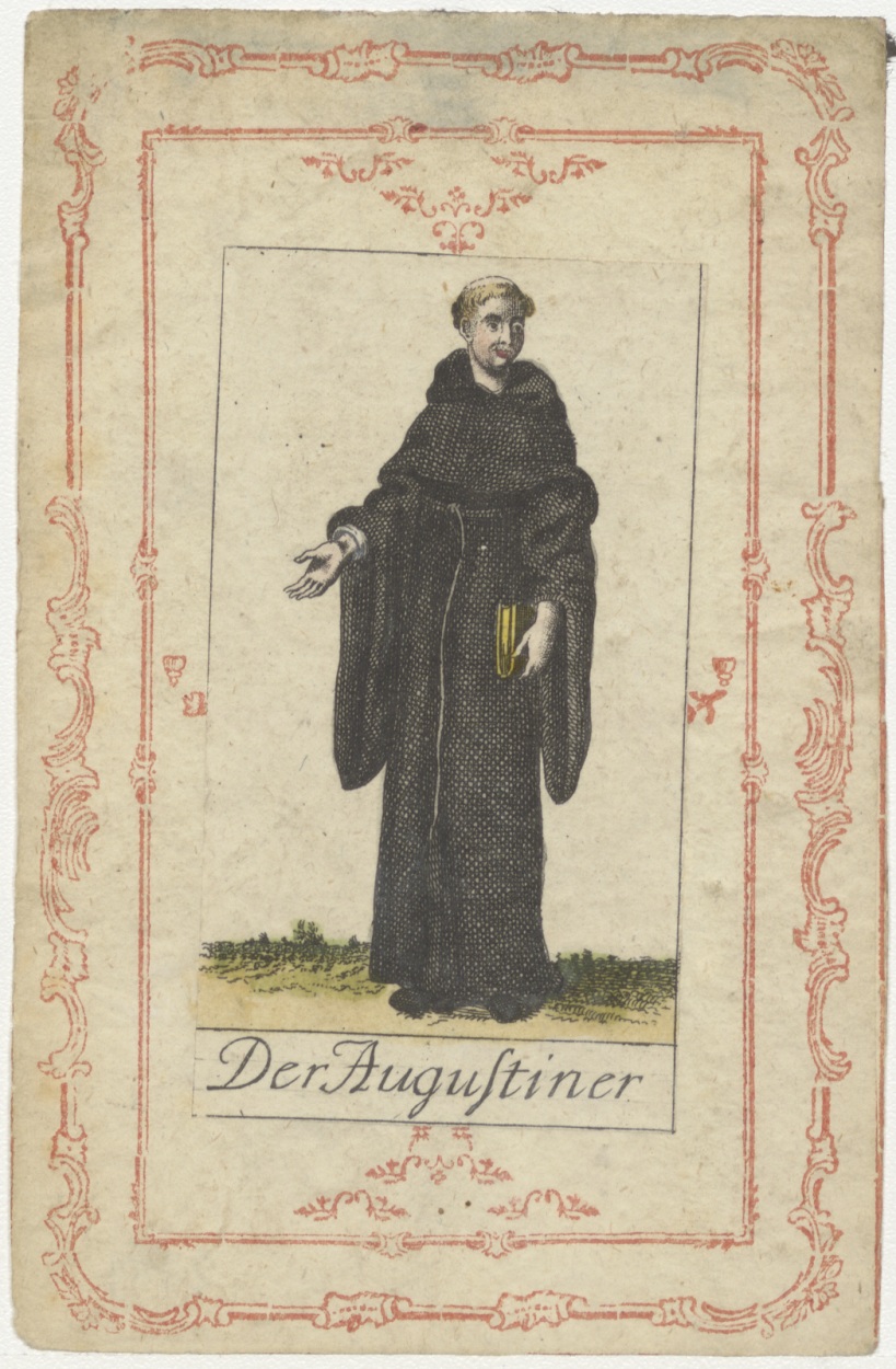 Serie kostuums religieuze ordes: Augustijner monnik (Duits), ingekleurd