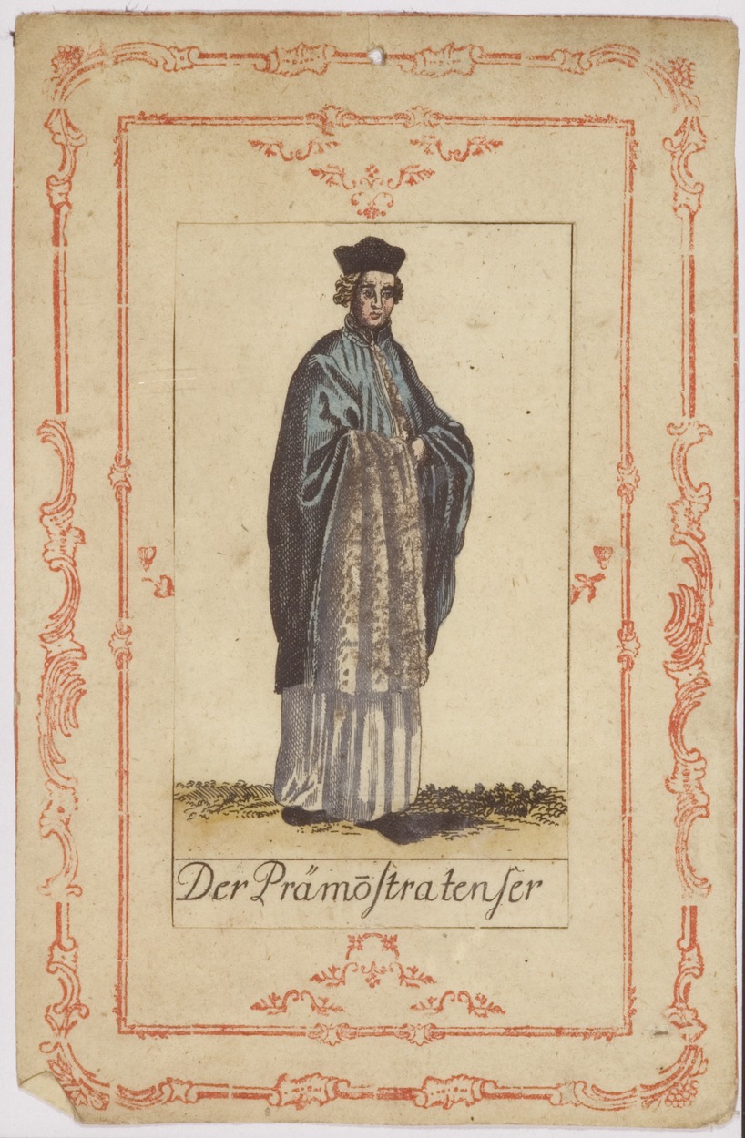 Serie kostuums religieuze ordes: Premonstratenser monnik (Duits), ingekleurd