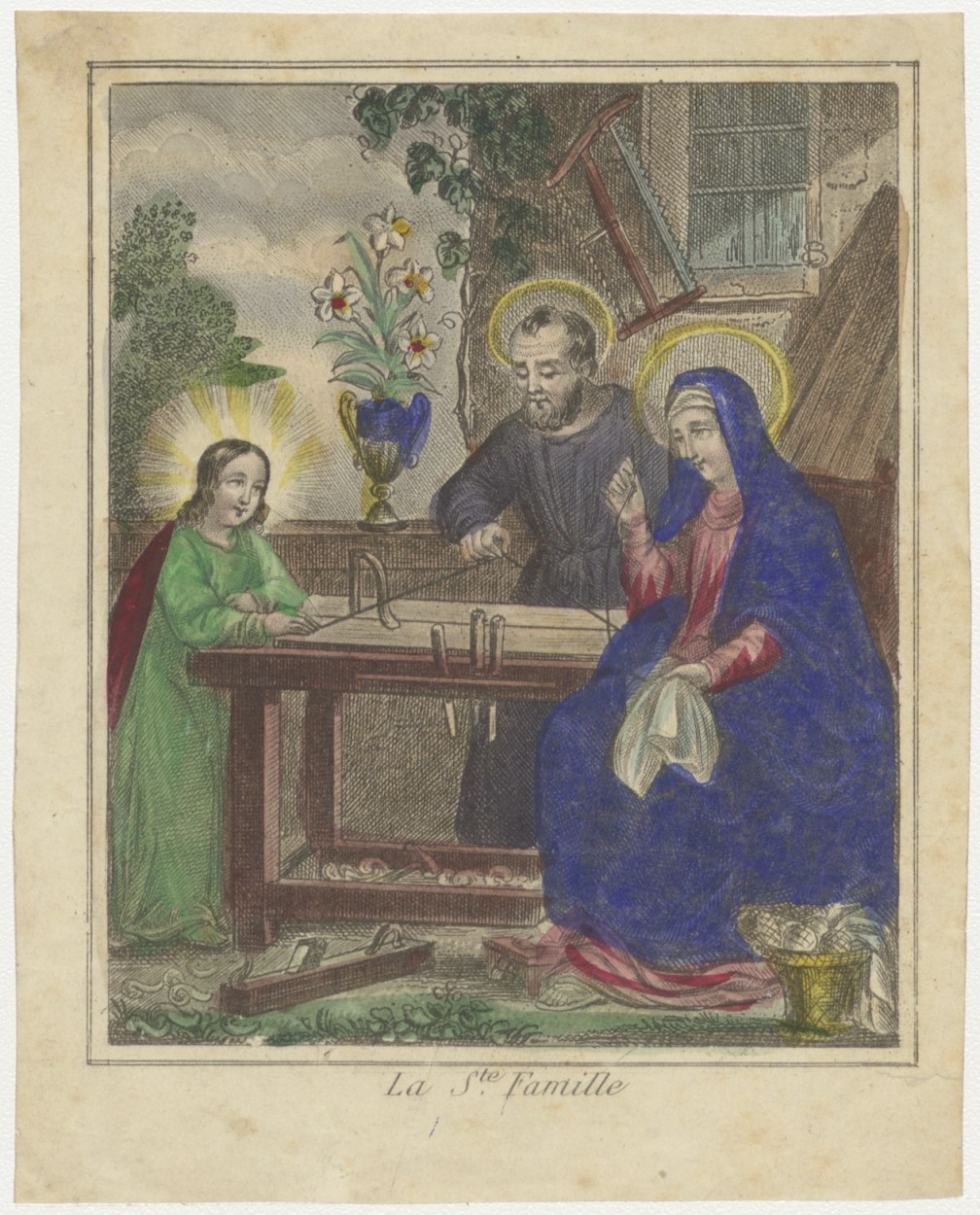H. Familie in timmermanswerkplaats (Frans), ingekleurd