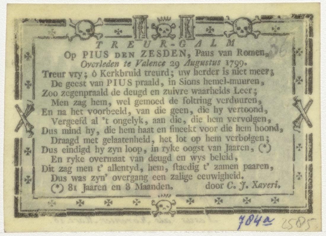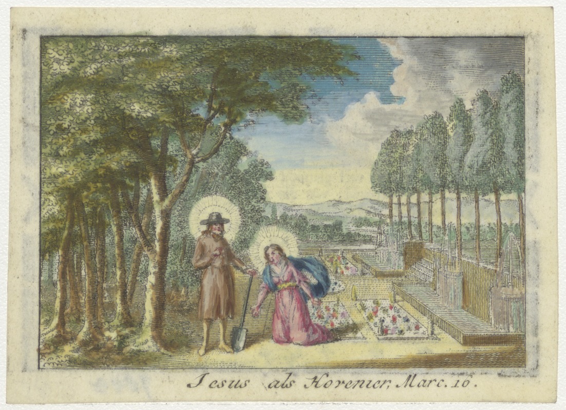 Christus als hovenier met H. Maria Magdalena, ingekleurd, kz. Religieus; bid voor Pius VI (+1799) Valence