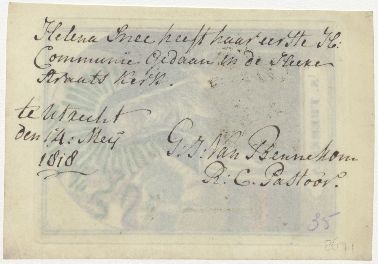 H. Theresia van Avila, ingekleurd, kz. H. Communie Snee, Herenstraatkerk Utrecht 1818, Bennekom pastoor