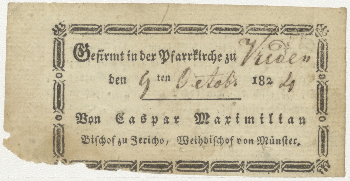 Tekst, kz. Tekst (Duits); H. Vormsel (1824) door bisschop van Jericho, Vreden