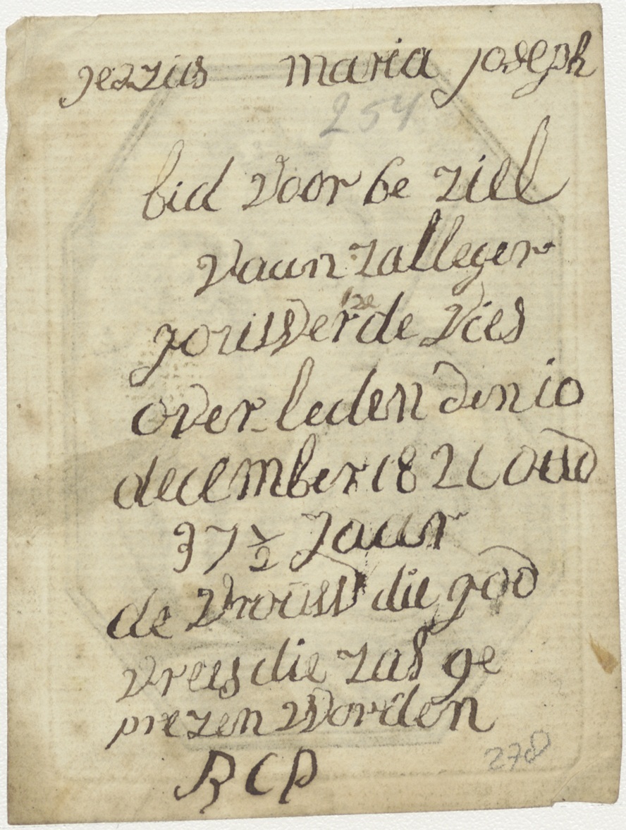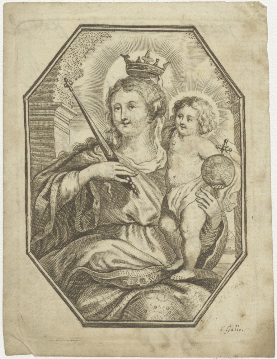 Maria gekroond, met scepter en kind, kz. Bid voor ziel Jorisse r De Vies (+1820)