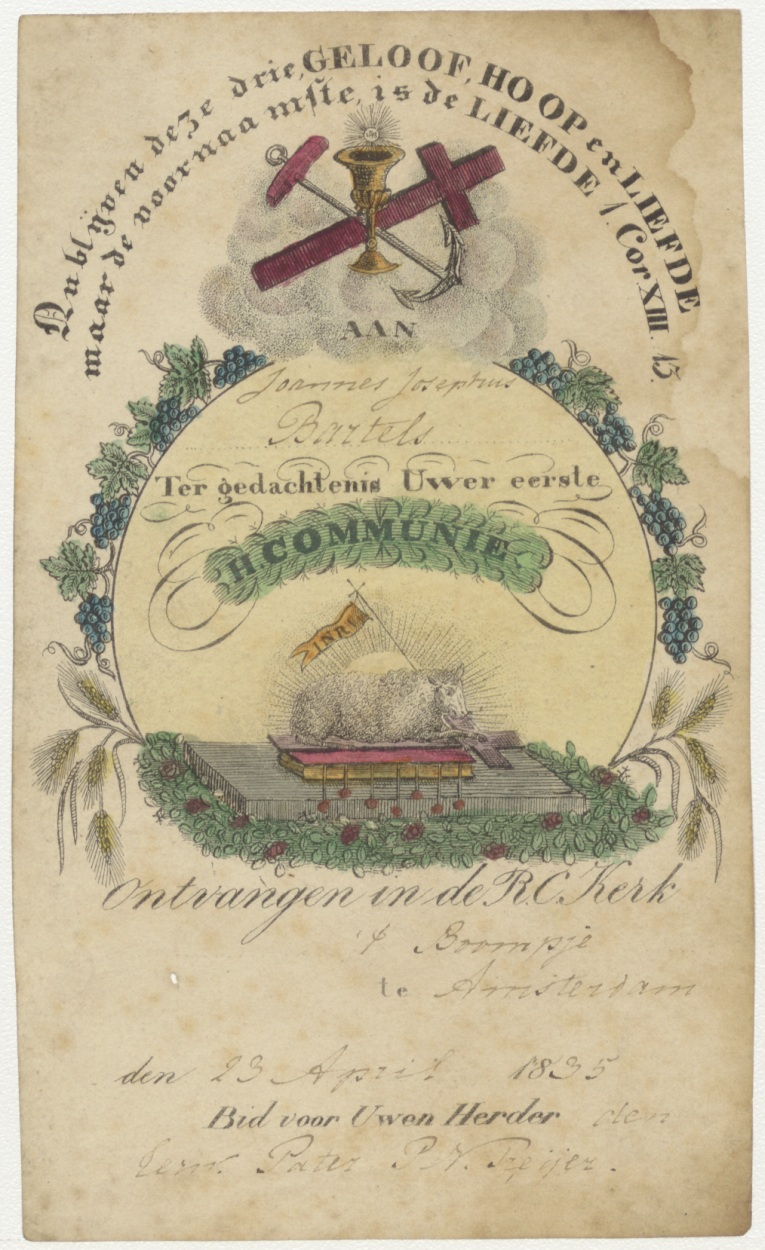 Lam Gods, kz. H. Communie Bartels, Amsterdam 1835