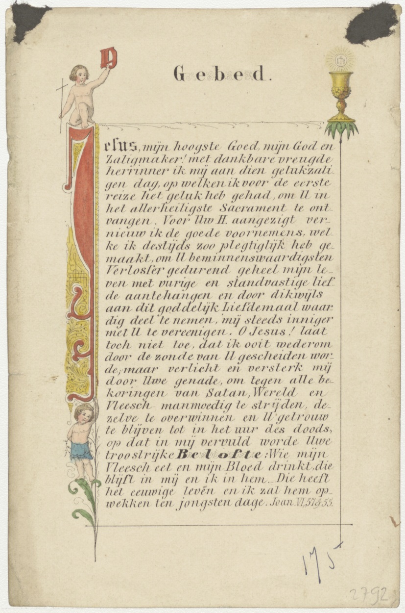 Instelling H. Sacrament, kz. H. Communie Winters, Lobith 1854; gebed