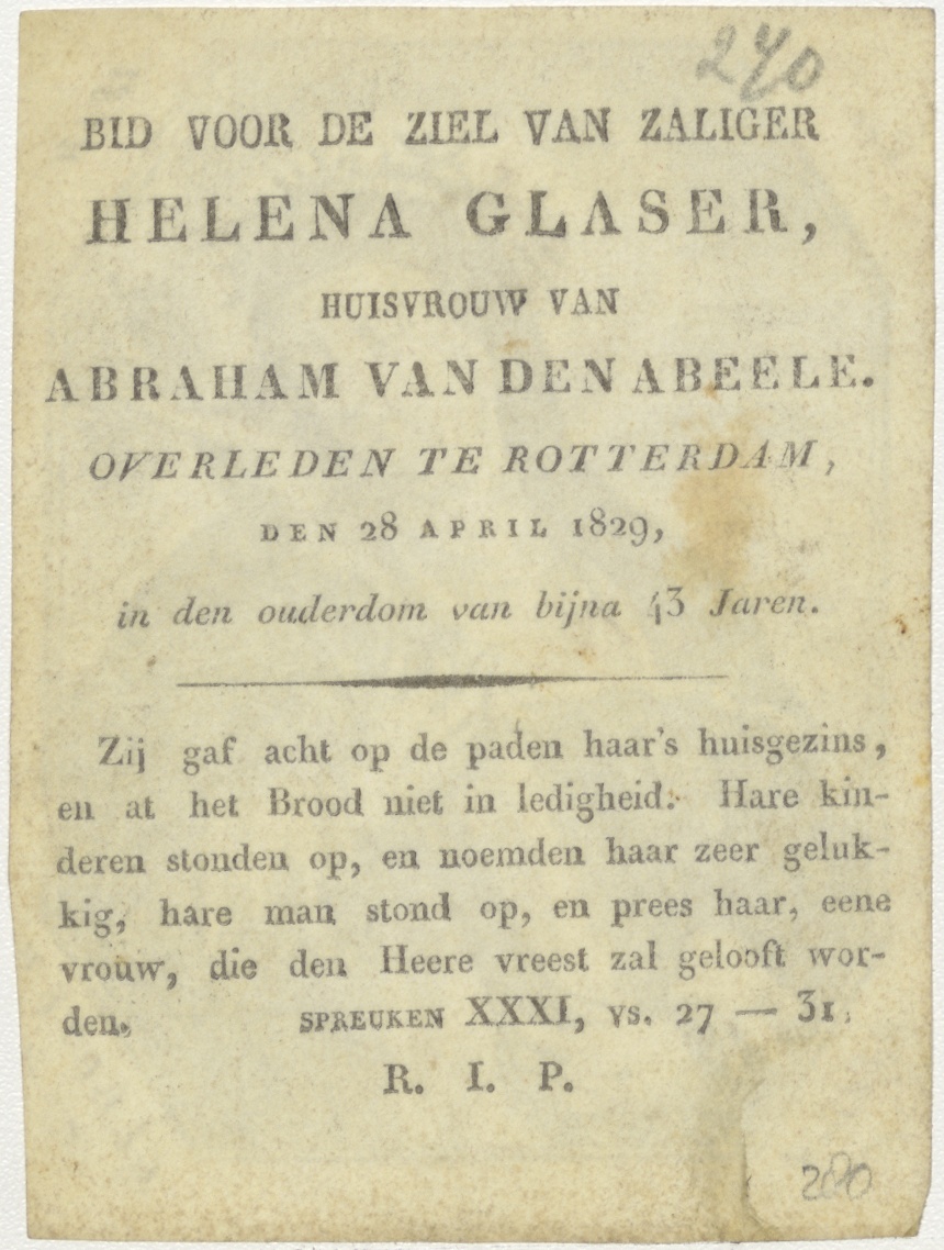 H. Theresia, kz. Bid voor ziel Glaser (+1829);Rotterdam