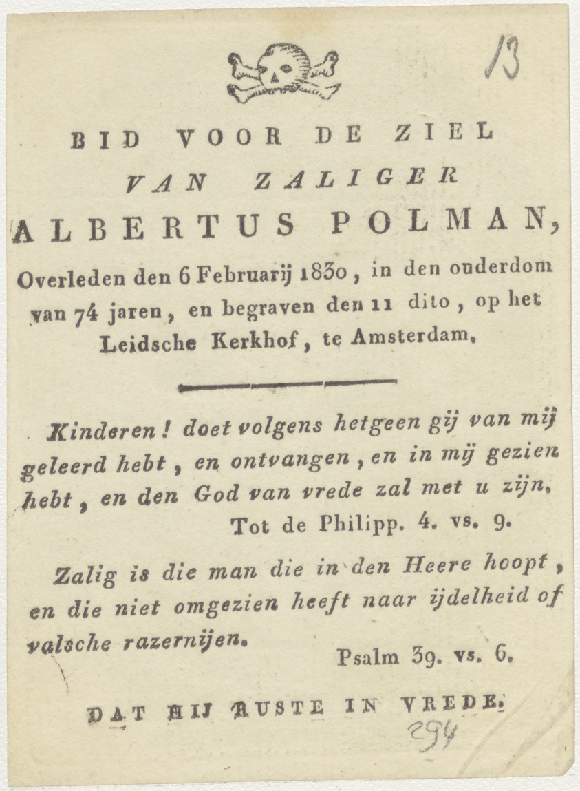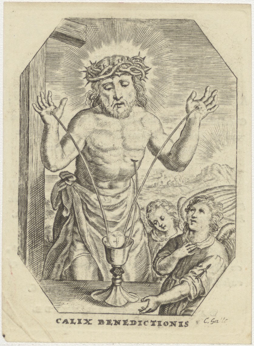 Christus als Man van Smarten, met kelk en H. Mis, symbolische voorstelling der H. Eucharistie, kz. Bid voor ziel Polman (+1830);Amsterdam
