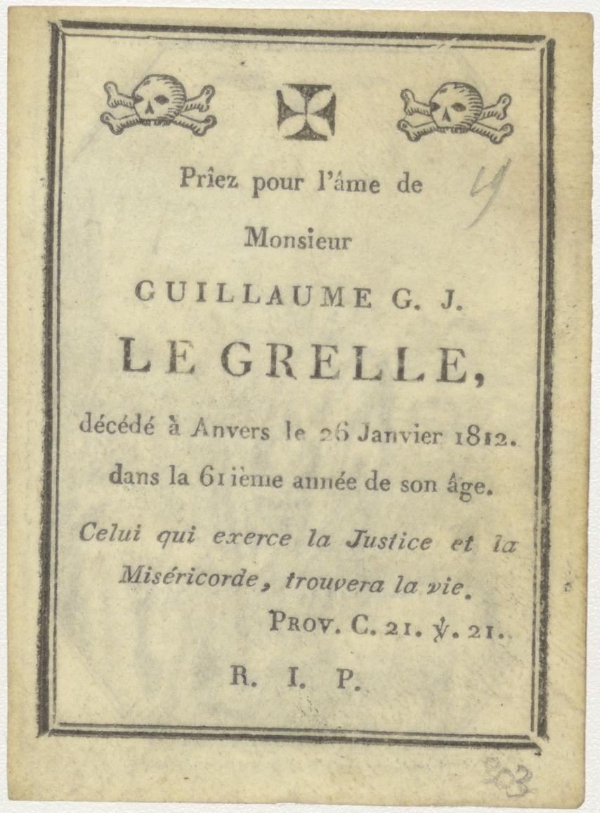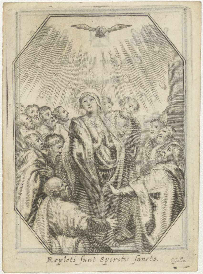 De nederdaling van de H. Geest, pinksteren, kz. Bid voor ziel Le Grelle (+1812);Antwerpen;(Frans)