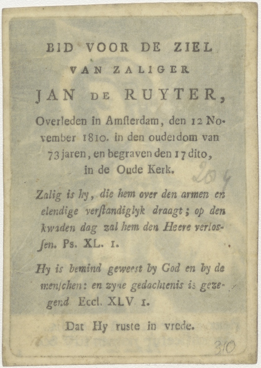 Christus als zaligmaker, met aardbol, kz. Bid voor ziel De Ruyter (+1810);Amsterdam
