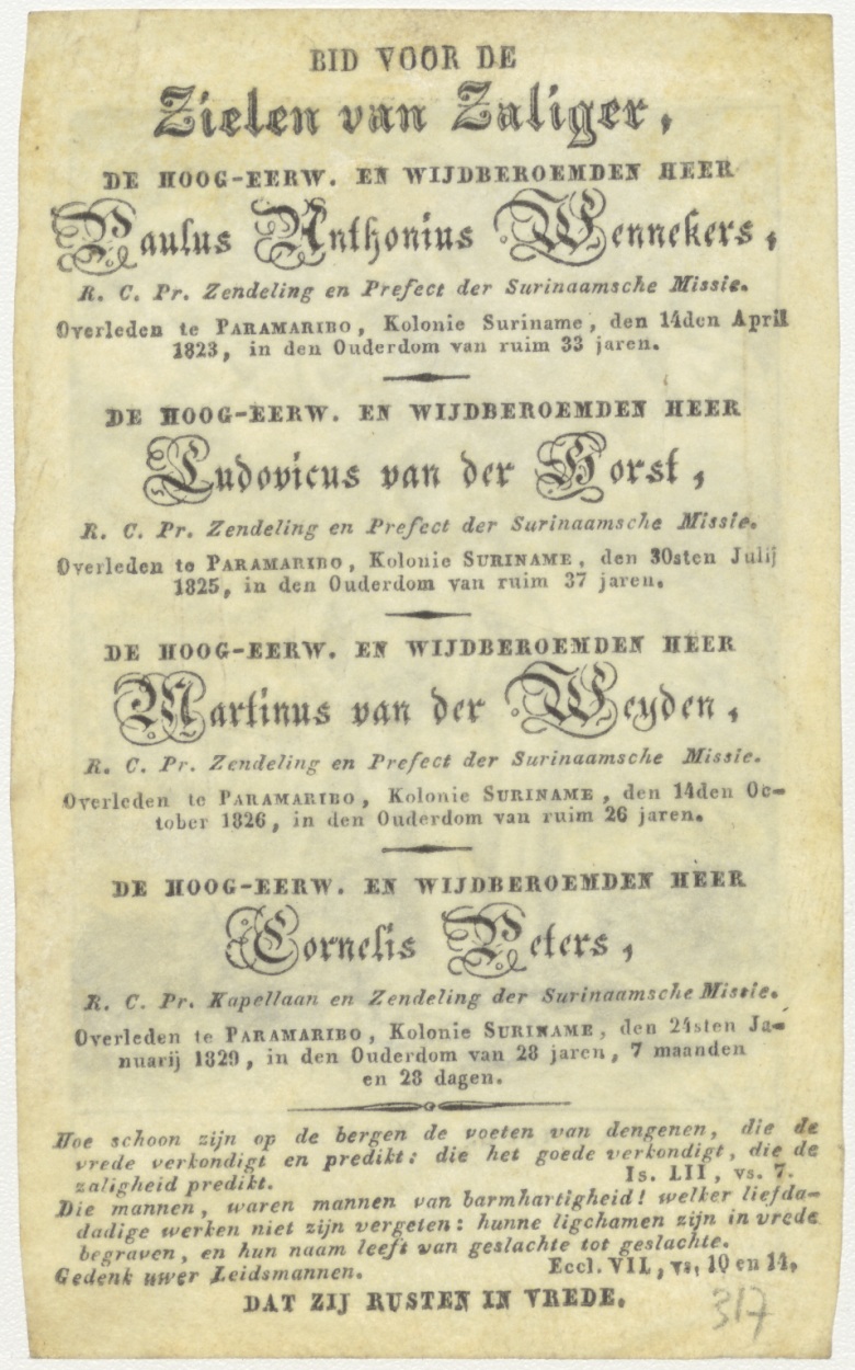H. Franciscus Xaverius, kz. Religieus;Bid voor ziel Wenneke (+1823);Van den Hopst (+1825);Van de Weyden (+1826);Paramaribo