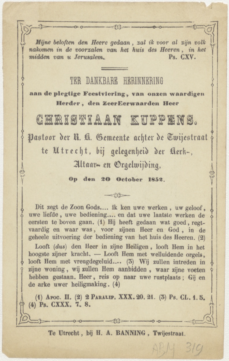 H. Nicolaas van Myra, kz. Ter dankbare herinnering aan de plegtige feestviering (etc.);pastoor Kuppens;Utrecht;1852