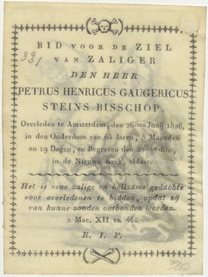 Doornenkroning van Christus, kz. Bid voor ziel Steins-Bisschop (+1826);Amsterdam
