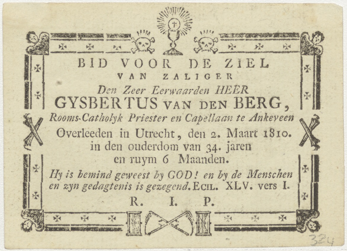 H. Lucas (evangelist), kz. Religieus;Bid voor ziel Van den Berg (+1810);kapellaan Ankeveen