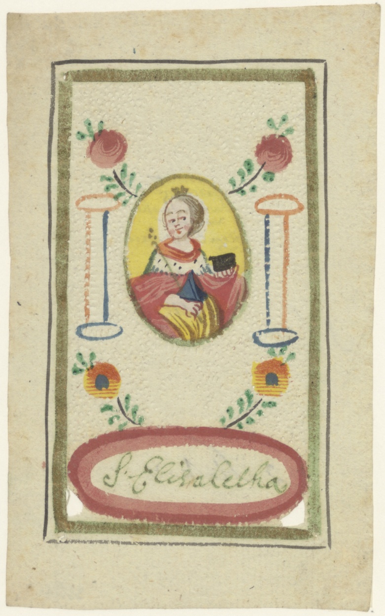 H. Elisabeth van Thüringen, ingekleurd, kz. Voor het opzeggen van de Passie van de Eerwaarde pastoor Everard Paasch;1811;
