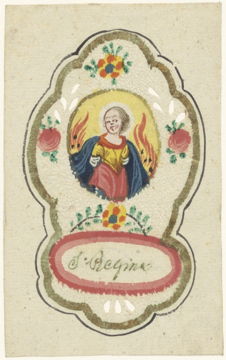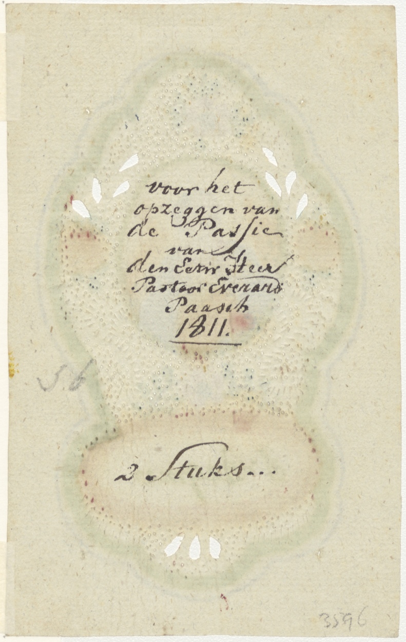 H. Regina, ingekleurd, kz. Voor het opzeggen van de Passie van den Eerwaarde Heer Pastoor Everard Paasch;1811;