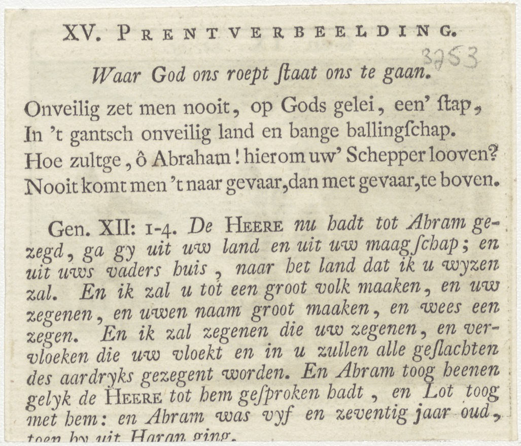 Bijbelscènes (serie): Bespotting van Noach (Gen.9:22-23), kz. boekdruk niet corresponderend met voorzijde;