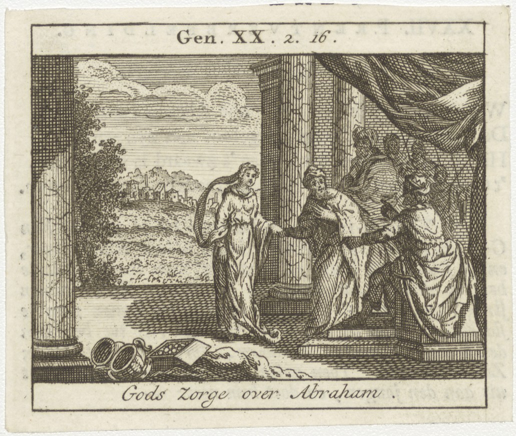 Bijbelscènes (serie): Gods zorge over Abraham (Gen.20:2-16), kz. boekdruk niet corresponderend met voorzijde;