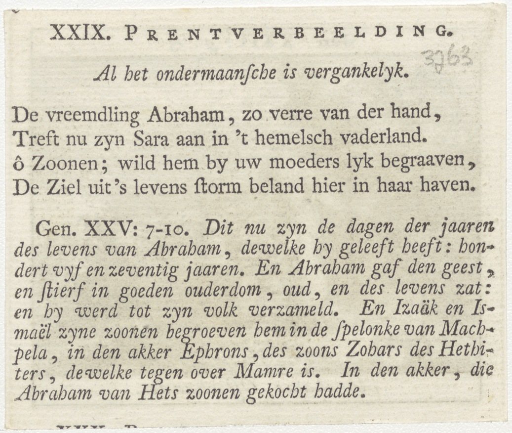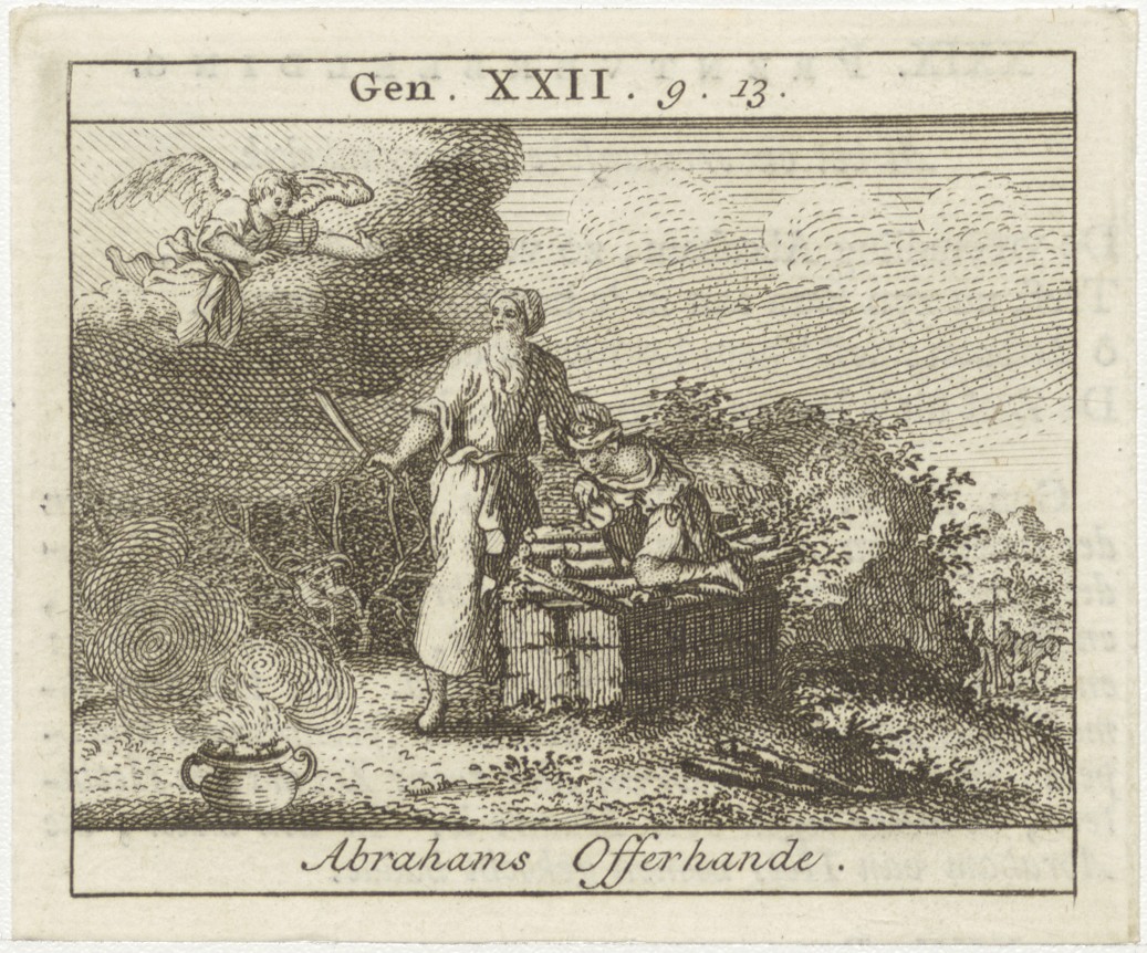 Bijbelscènes (serie): Abrahams offerhande (Gen.22:9-13), kz. boekdruk niet corresponderend met voorzijde;