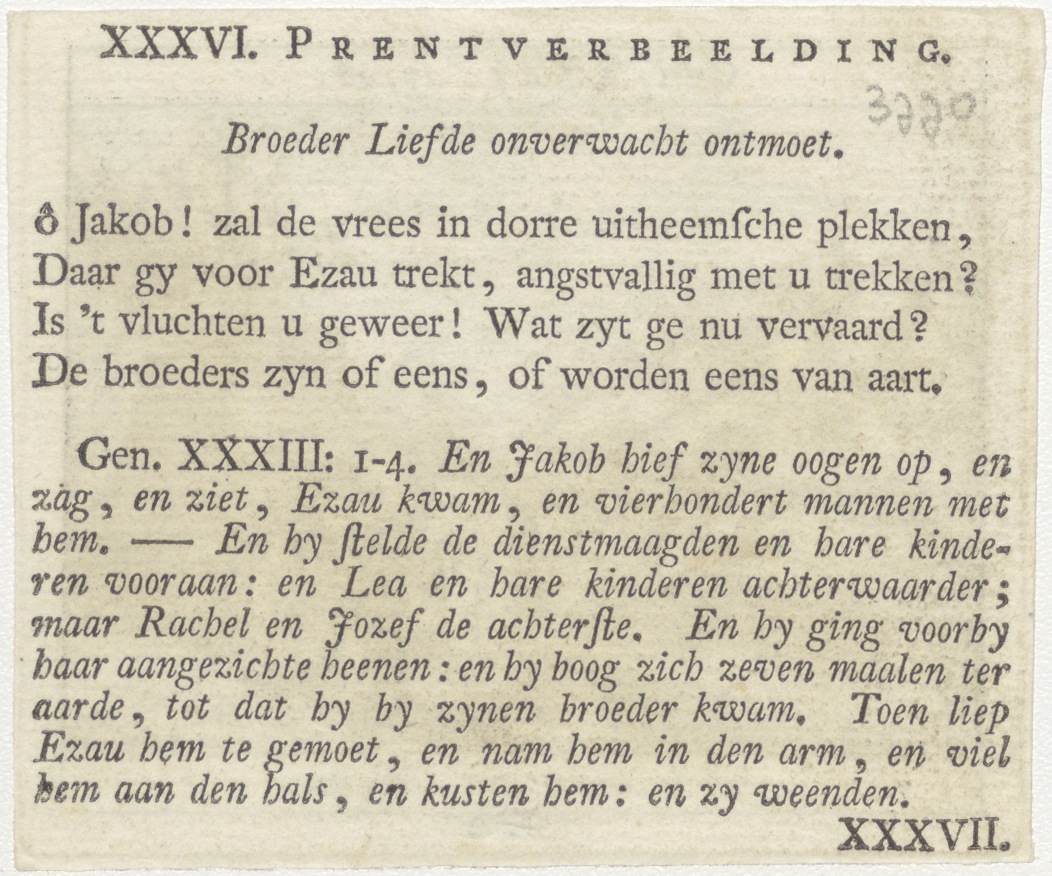 Bijbelscènes (serie): Jakob trekt uit Haran (Gen.31:17-18), kz. boekdruk niet corresponderend met voorzijde;