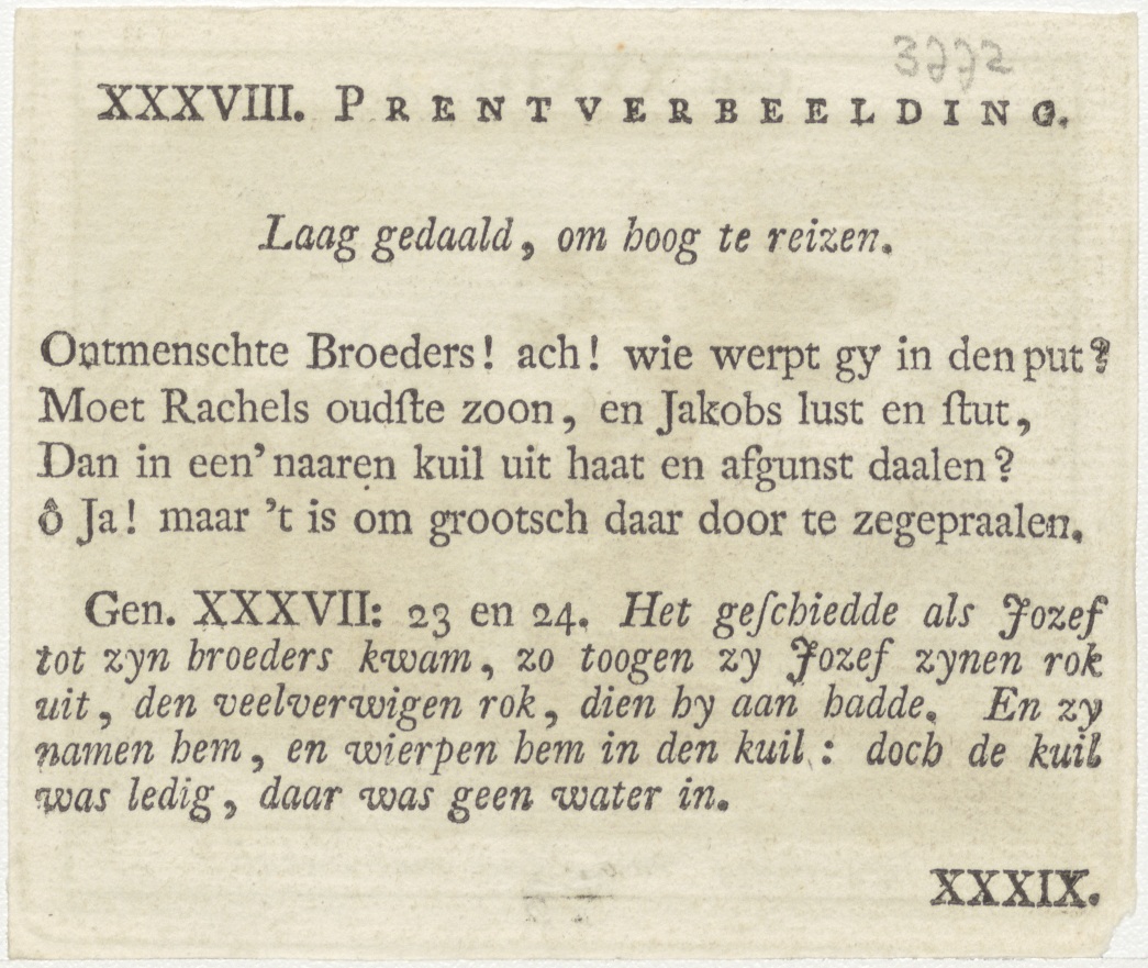 Bijbelscènes (serie): Verzoening van Ezau met Jakob (Gen.33:4), kz. boekdruk niet corresponderend met voorzijde;