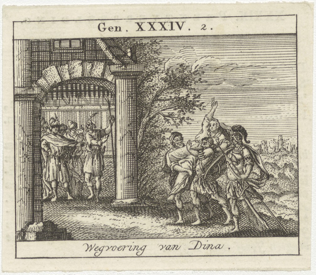 Bijbelscènes (serie): Wegvoering van Dina (Gen.24:2), kz. boekdruk niet corresponderend met voorzijde;