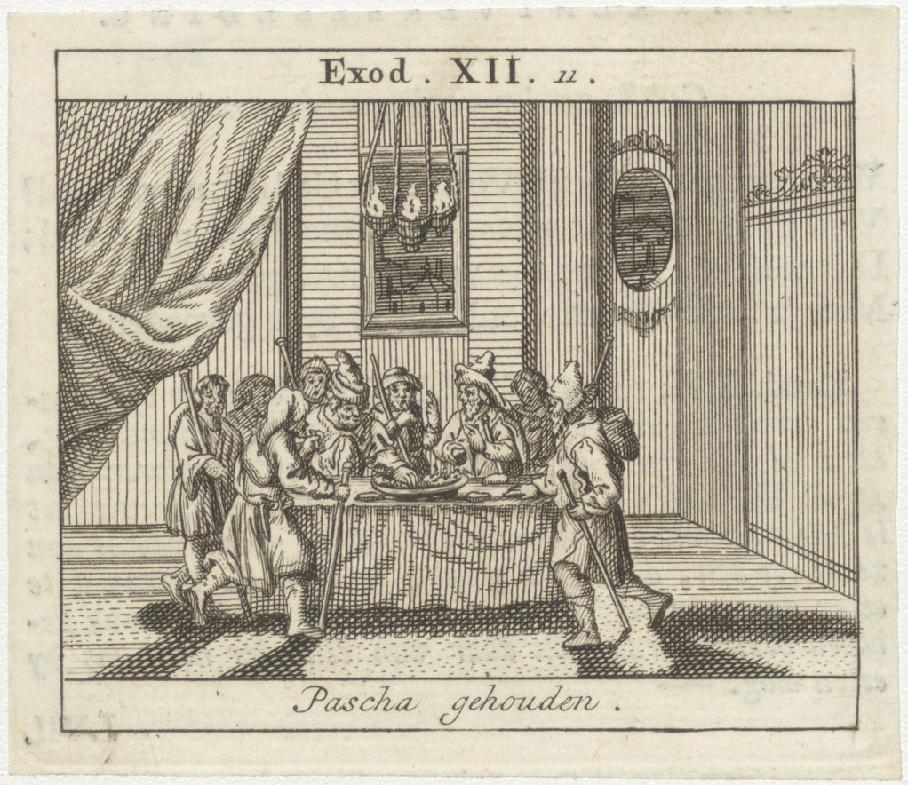 Bijbelscènes (serie): Pascha gehouden (Ex.12:11), kz. boekdruk niet corresponderend met voorzijde;