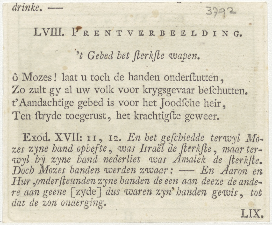 Bijbelscènes (serie): 't Vallen van 't manna (Ex.16:14-15), kz. boekdruk niet corresponderend met voorzijde;