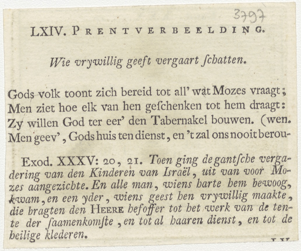 Bijbelscènes (serie): Tente der Zamenkomste (Ex.30:7-10), kz. boekdruk niet corresponderend met voorzijde;