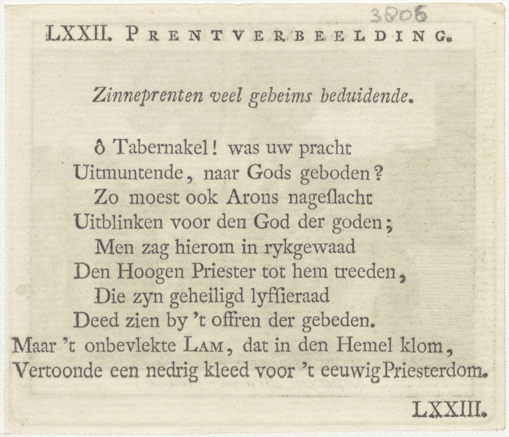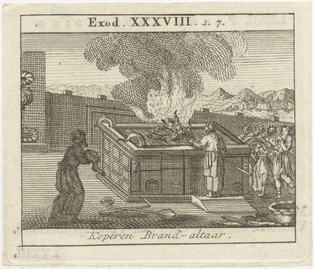 Bijbelscènes (serie): Koperen Brand-altaar (Ex.38:1-7), kz. boekdruk niet corresponderend met voorzijde;