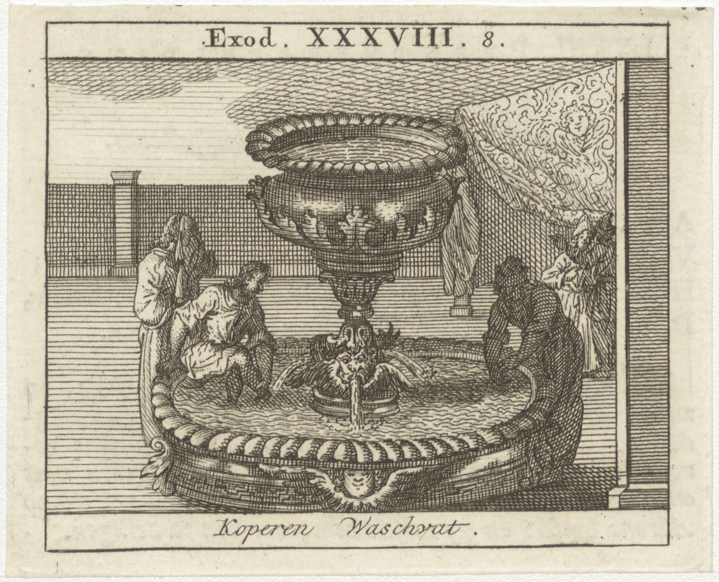 Bijbelscènes (serie): Koperen Waschvat (Ex.38:8), kz. boekdruk niet corresponderend met voorzijde;