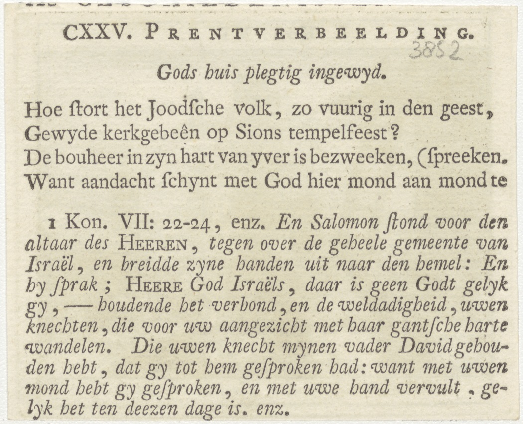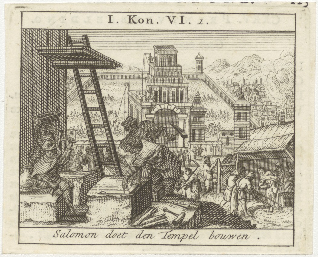 Bijbelscènes (serie): Salomon doet den tempel bouwen (1 Kon.6:1), kz. boekdruk niet corresponderend met voorzijde;