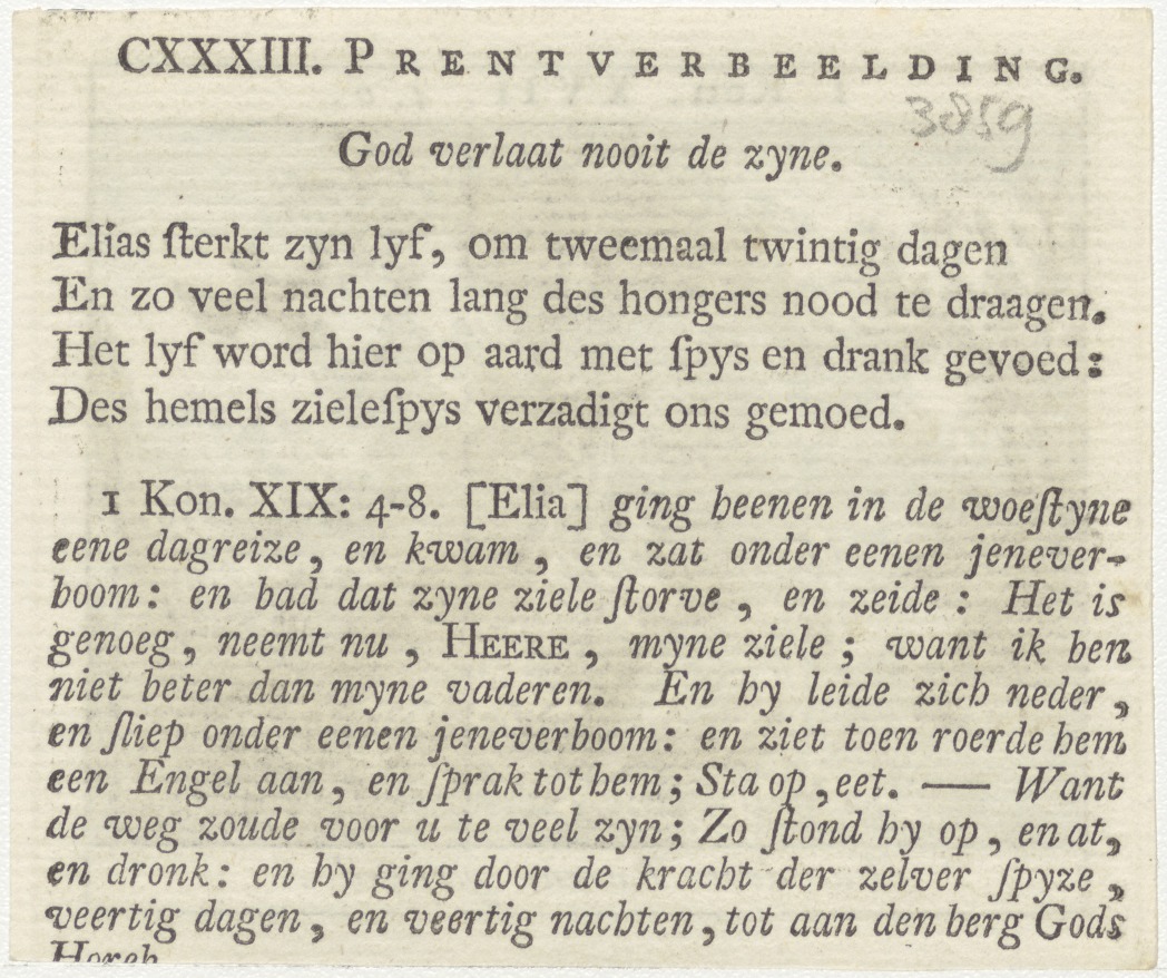 Bijbelscènes (serie): Elia door Ravens gespijsd (1 Kon.17:4-6), kz. boekdruk niet corresponderend met voorzijde;