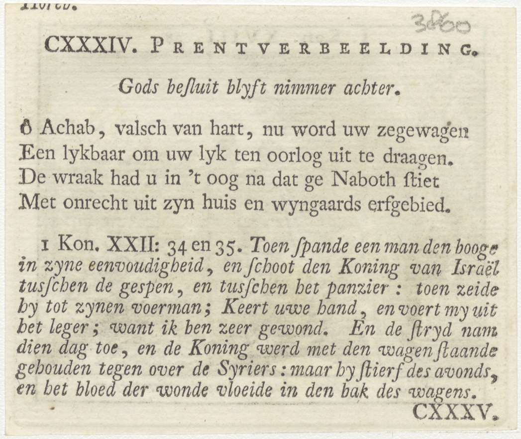 Bijbelscènes (serie): Elia's offer door vuur verteert (1 Kon.18:38), kz. boekdruk niet corresponderend met voorzijde;
