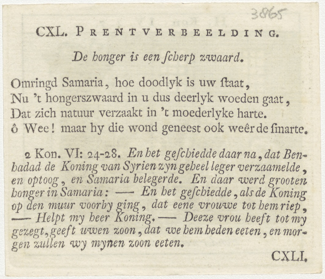 Bijbelscènes (serie): Wonderwerk van Eliza (2 Kon.4:1-7), kz. boekdruk niet corresponderend met voorzijde;