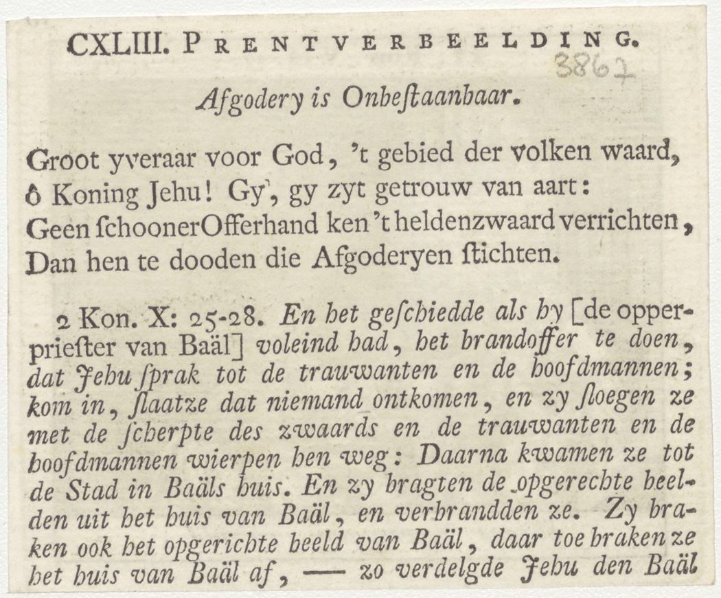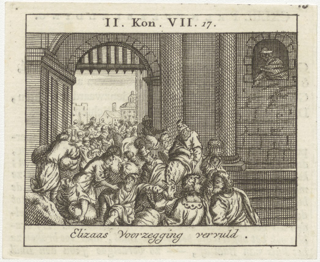 Bijbelscènes (serie): Elizaas voorzegging vervuld (2 Kon.7:17), kz. boekdruk niet corresponderend met voorzijde;