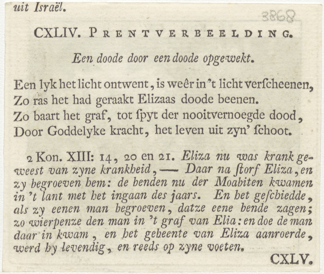 Bijbelscènes (serie): Izabel voor de honden geworpen (2 Kon.9:30-35), kz. boekdruk niet corresponderend met voorzijde;