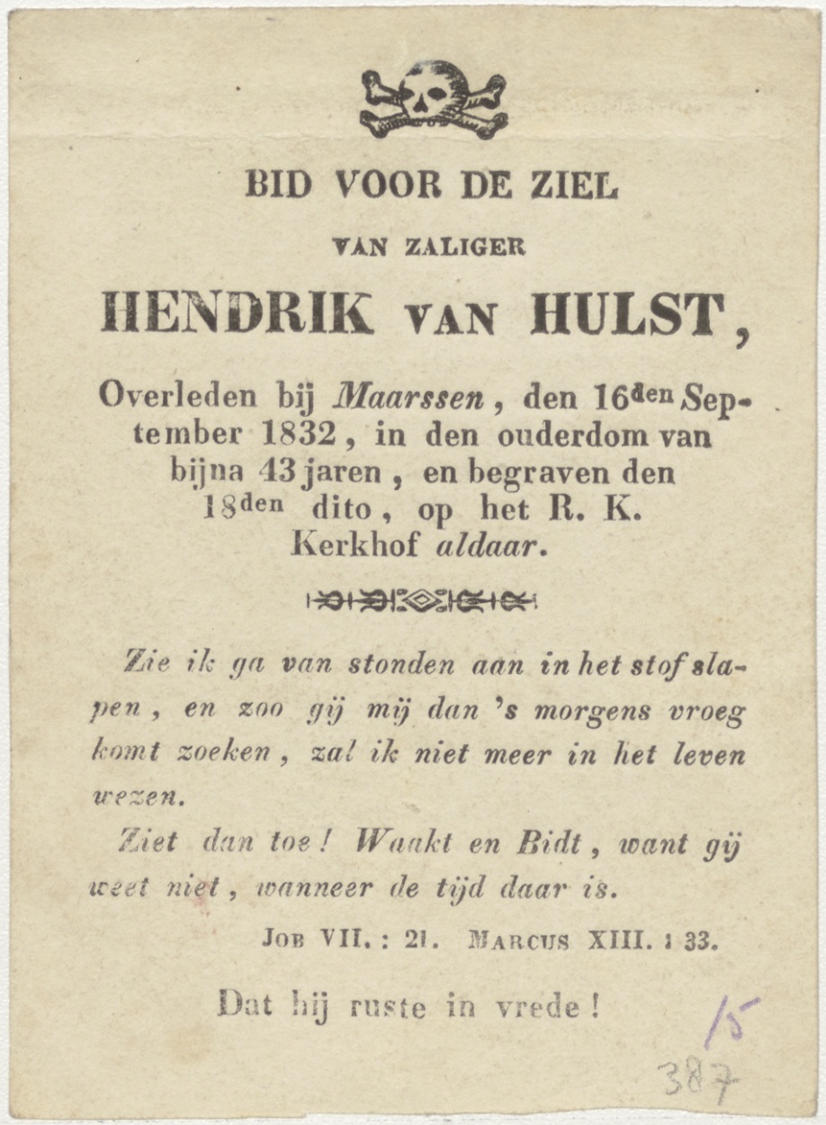 Ecce Homo, kz. Bid voor ziel Van Hulst (+1832);Maarssen