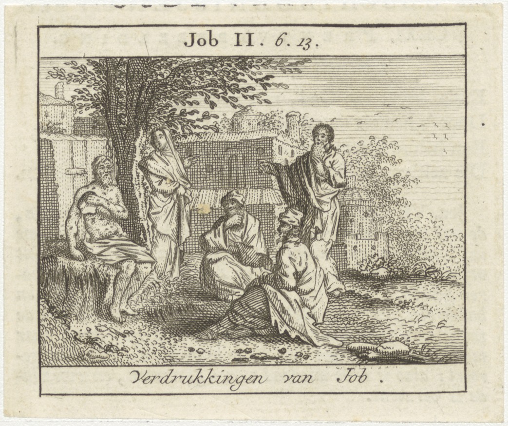 Bijbelscènes (serie): Verdrukkingen van Job (Job 2:6-13), kz. boekdruk niet corresponderend met voorzijde;