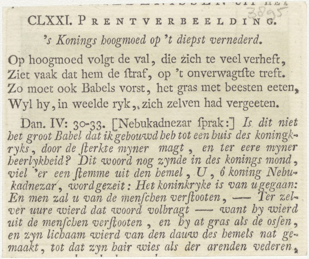 Bijbelscènes (serie): Uitlegging van Nebucadnezars droom (Dan.2), kz. boekdruk niet corresponderend met voorzijde;