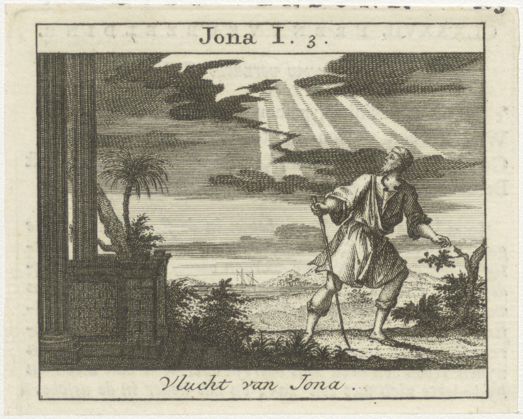 Bijbelscènes (serie): Vlucht van Jona (Jona 1:3), kz. boekdruk niet corresponderend met voorzijde;