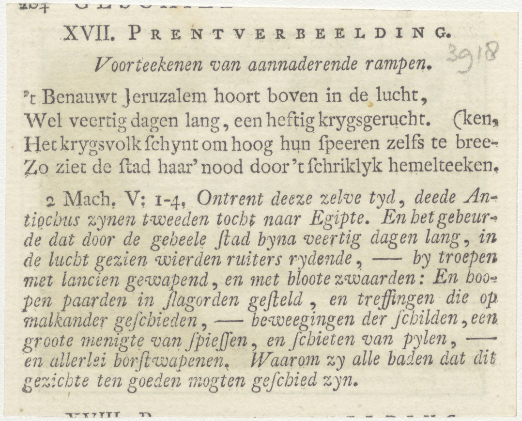 Bijbelscènes (serie): Graftombe voor Jonathan opgericht (1 Makk.13:27-30), kz. boekdruk niet corresponderend met voorzijde;