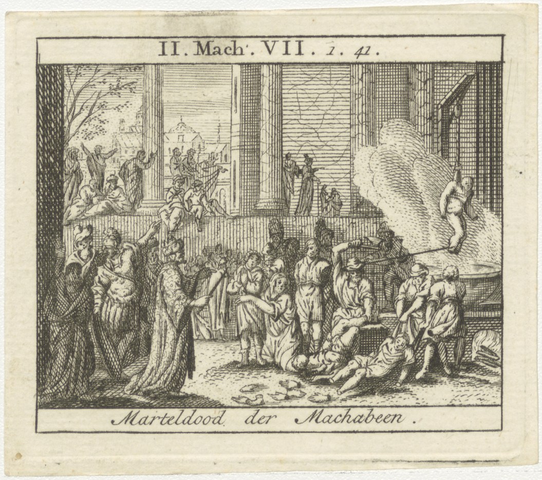 Bijbelscènes (serie): Marteldood der Mechabeen (2 Makk.7:1-41), kz. boekdruk niet corresponderend met voorzijde;