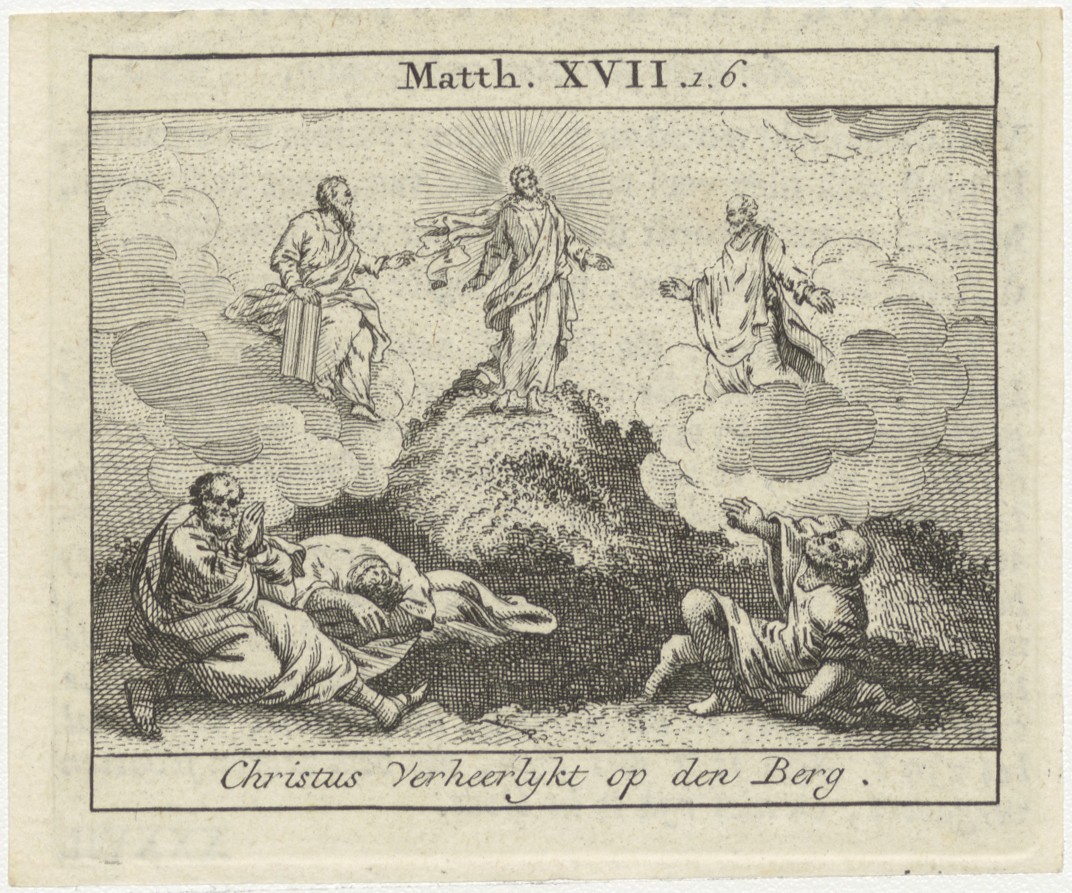 Bijbelscènes (serie): Christus verheerlijkt op den berg (Mat.17:1-6), kz. boekdruk niet corresponderend met voorzijde;