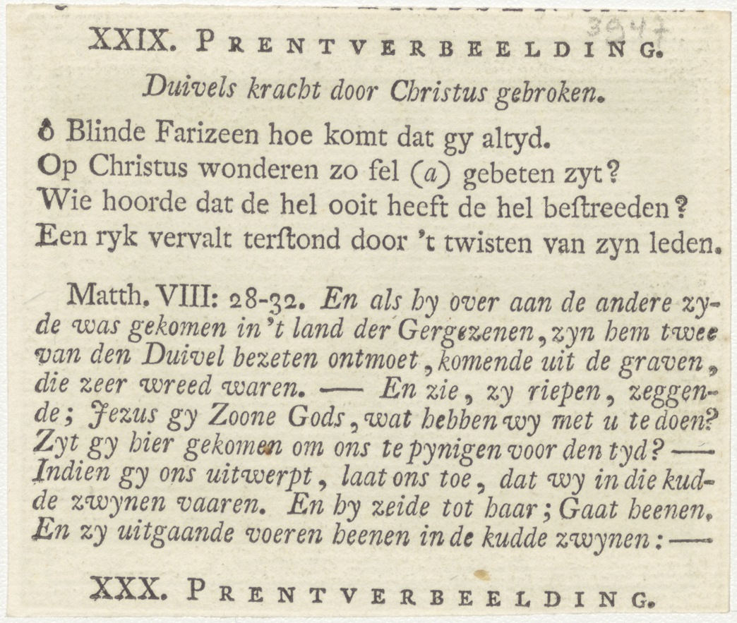 Bijbelscènes (serie): 't Hooft van Joannes (Mar.6:27-28), kz. boekdruk niet corresponderend met voorzijde;