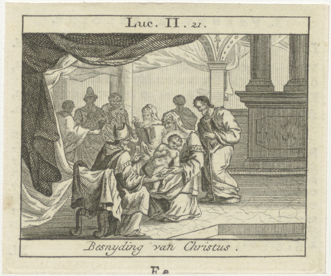 Bijbelscènes (serie): Besnijdenis van Christus (Luc.2:21), kz. boekdruk niet corresponderend met voorzijde;